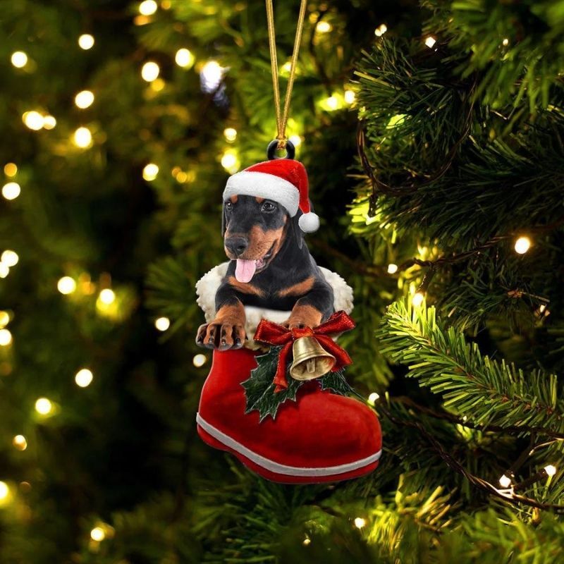 Doberman Pinscher In Santa Boot Christmas Hanging Ornament SB086