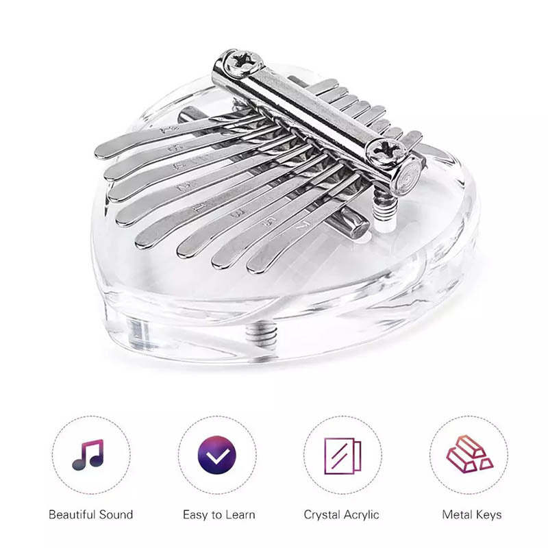 Create serenading sounds that will delight your day with a magic music box right in the palm of your hands even if you don’t have any musical background. This exquisite Mini Kalimba Thumb Piano contains a total of 8 keys and is a magic music box that can produce soothing, calming, and attractive sound. An ideal gift for music lovers. Perfect for kids and adults to use, small in size and compact. Handmade with premium quality materials and uncomplicated to tune and to use.