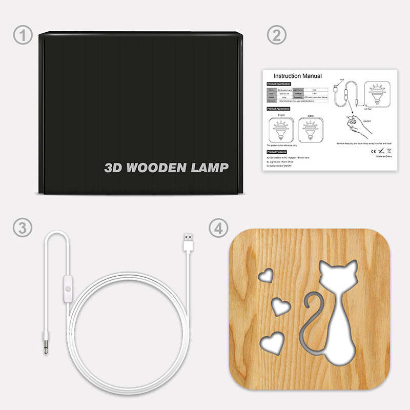 • Product accessories: Wooden night light + 1 USB cable + 1 manual + 1 (color box packaging)