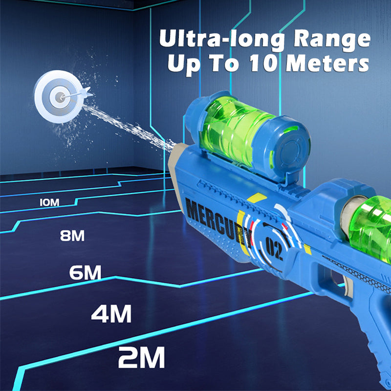 Ultra-Long Range: Blast your opponents from a distance with an impressive range of up to ten meters, giving you the tactical advantage in any water fight.