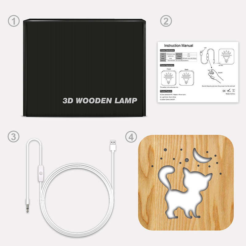 • Product accessories: Wooden night light + 1 USB cable + 1 manual + 1 (color box packaging)