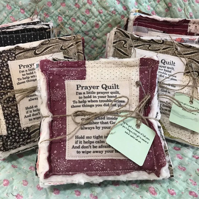 💚The poems are sewn onto carefully selected vintage quilts, and there is a wooden cross sewn into the center of each quilt square, so each time you touch it, you can be reminded that God is always with you.