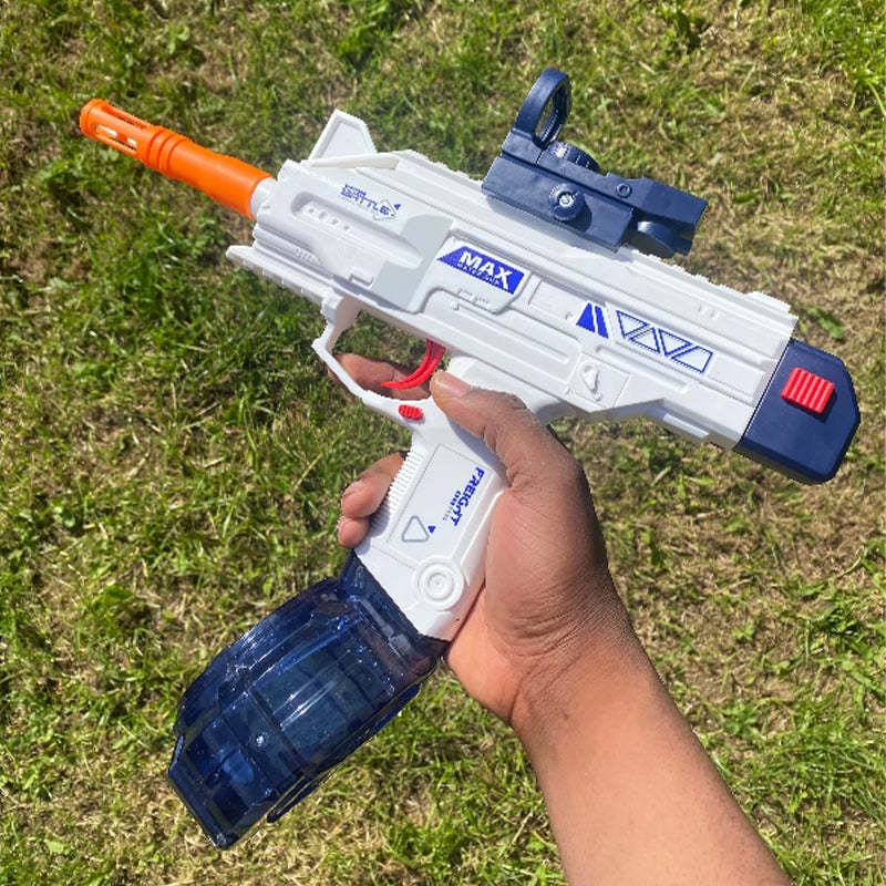 Keep the fight going with the fast-pump action of the Uzi Electric Water Gun! Quick reloads and seamless shooting let you outgun and win any water battle.